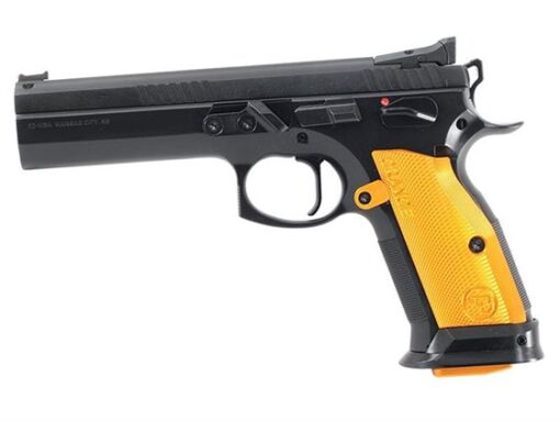 The Orange takes the Tactical Sport to the next level by incorporating some Czechmate design elements as well as a few of its own. It includes a thumb stop and completely adjustable target sights along with the slimmer trigger guard, revised grip geometry, and finer checkering from the Czechmate frame.