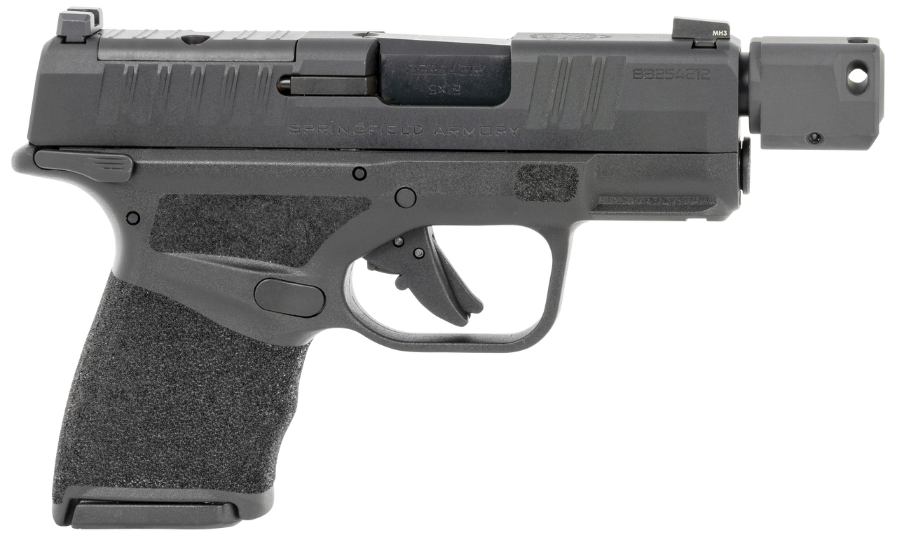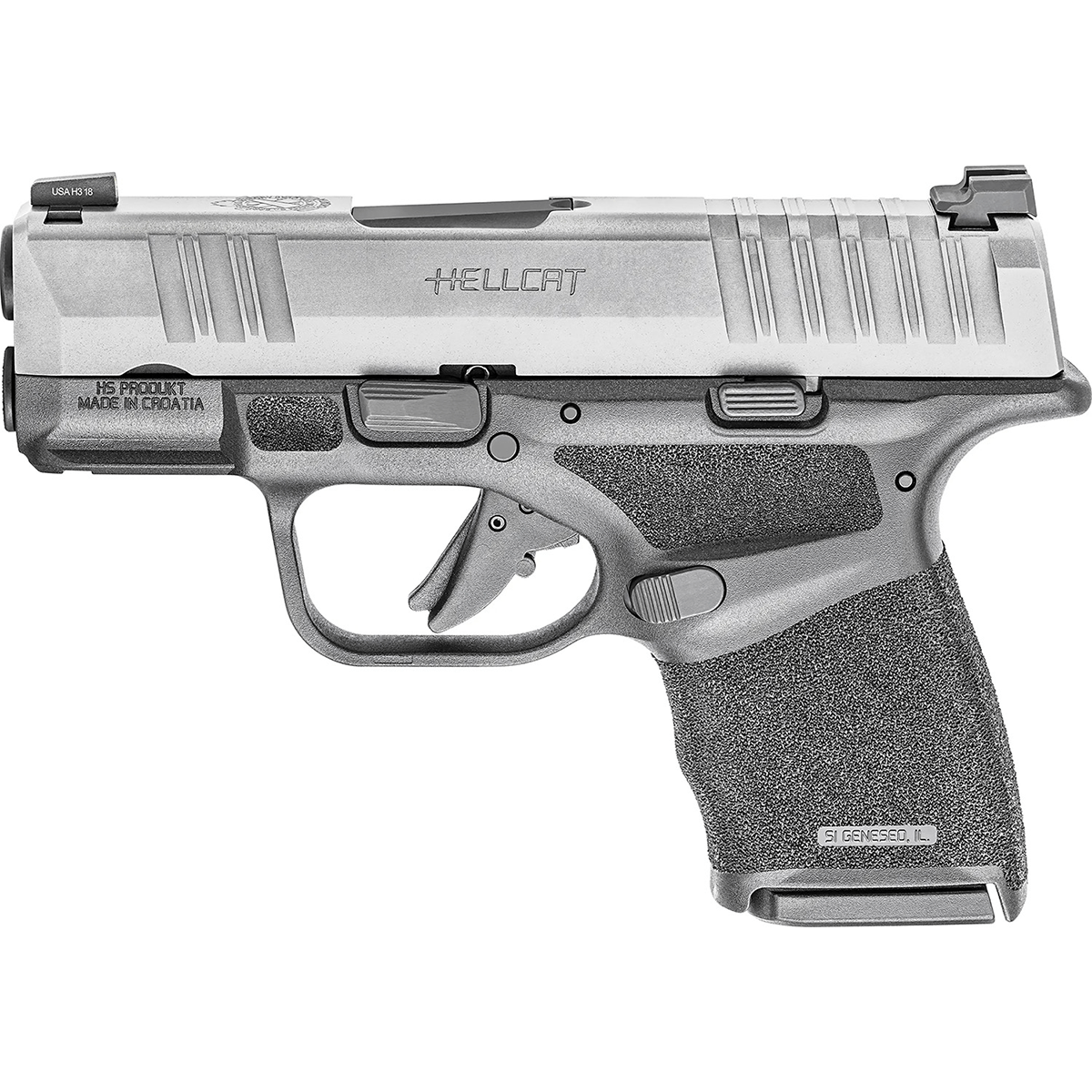 The springfield hellcat micro-compact 9mm offers a threaded/compensated barrel, manual safety, and optic cut slide for superior performance and reliability.